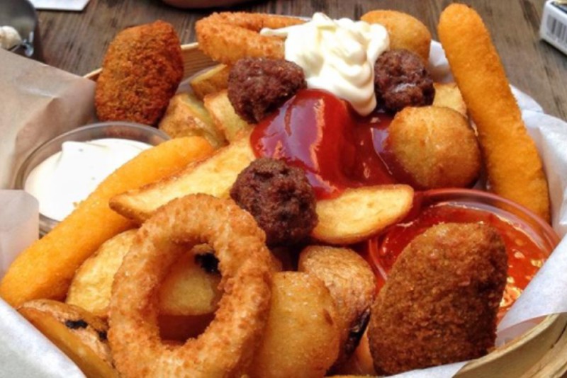 3 ad. Çıtır Tavuk Küpü + 3 ad. Yıldız sosis + 3 ad. Soğan Halkası + 3 ad. Patates Kroket + 3 ad. Peynir Çubuğu + Patates Kızartması ve Ketçap&Mayonez eşliğinde